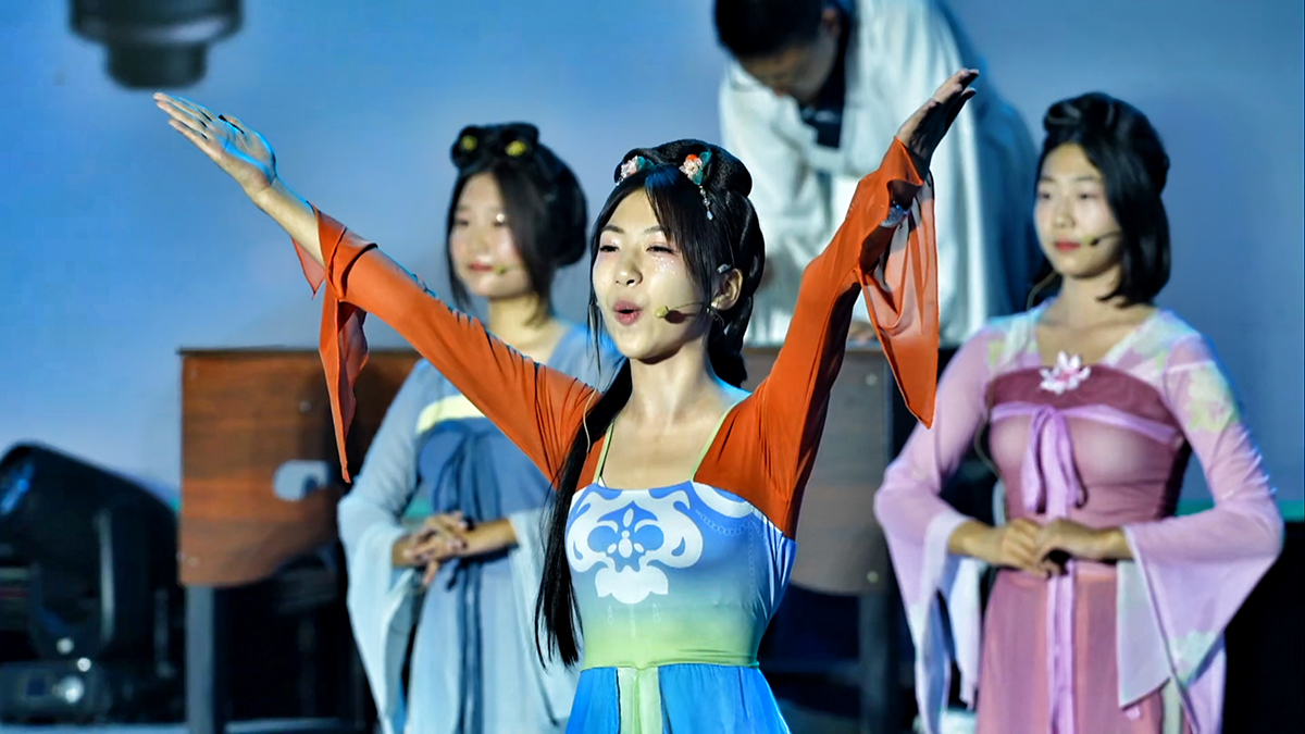 书画古筝表演《诗画校园》将诗与画完美融合,让校园成为一幅流动的画卷,一首悠扬的诗篇。书画的灵动笔触与古筝的婉转弦音相互呼应,共同构建出一个如梦如幻的“诗画校园”。